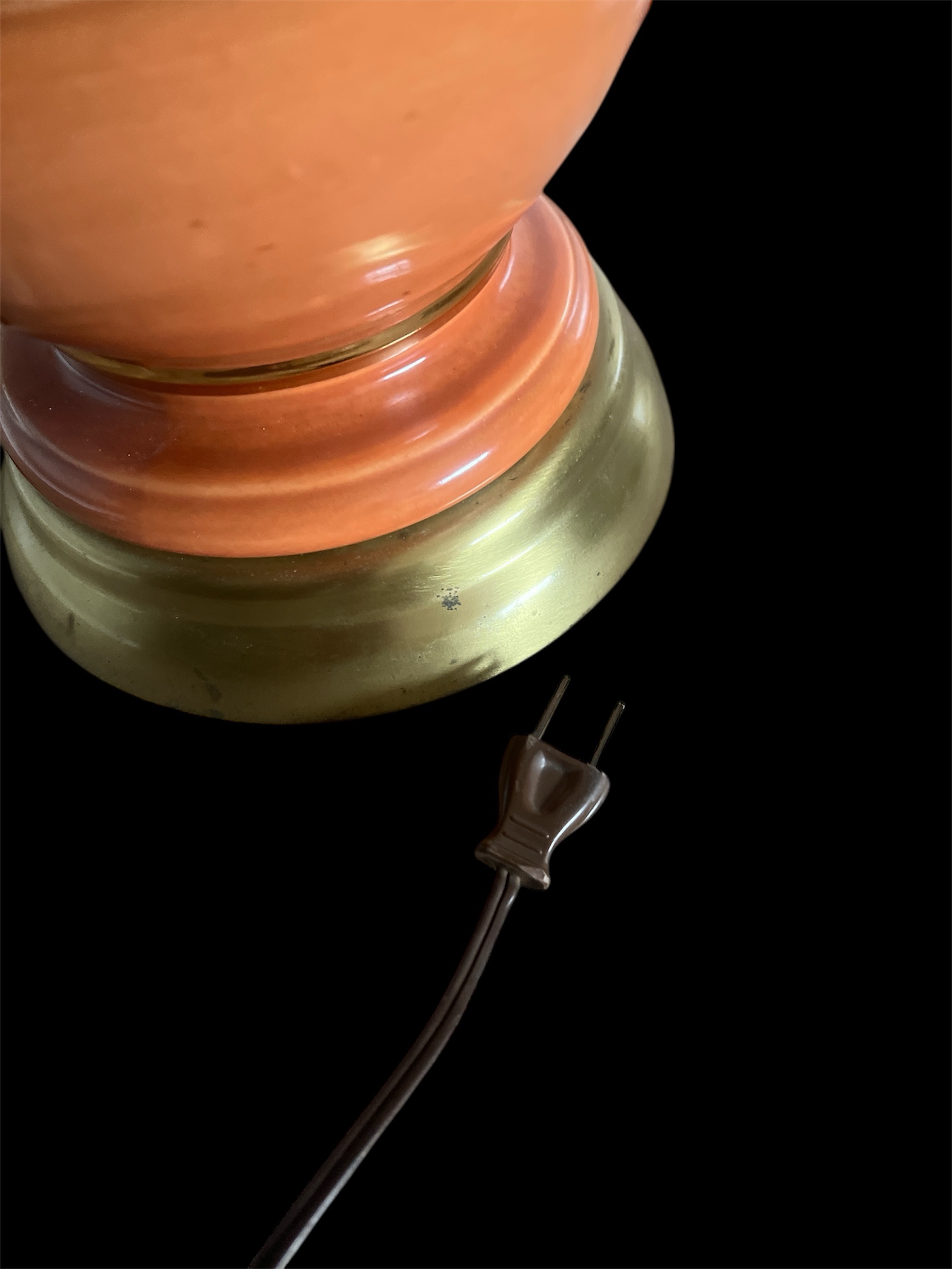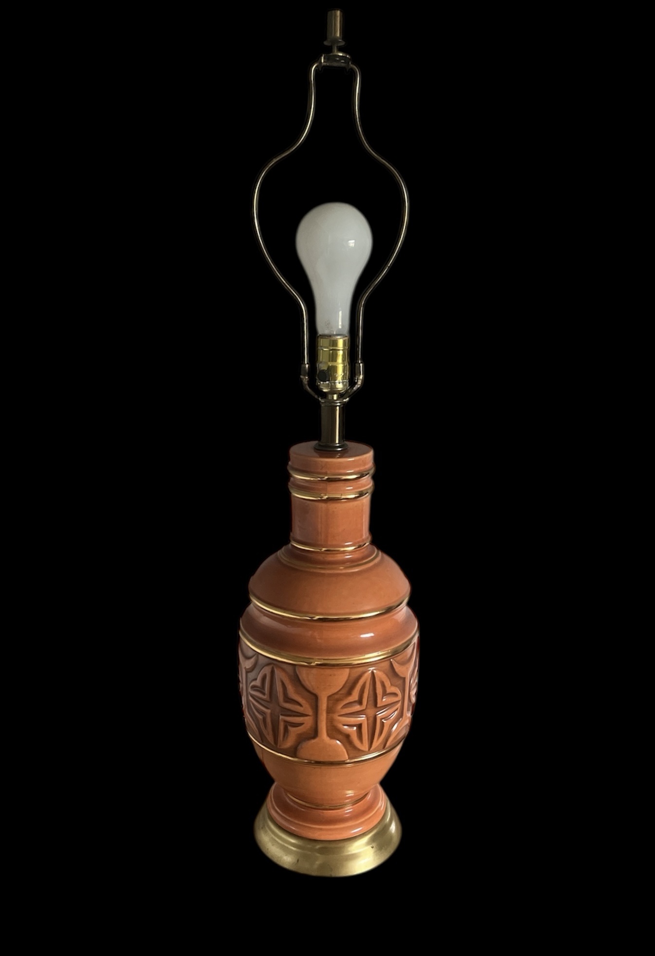 Vintage Mid-Century Ceramic Table Lamp Terracotta Color with Brass Accents