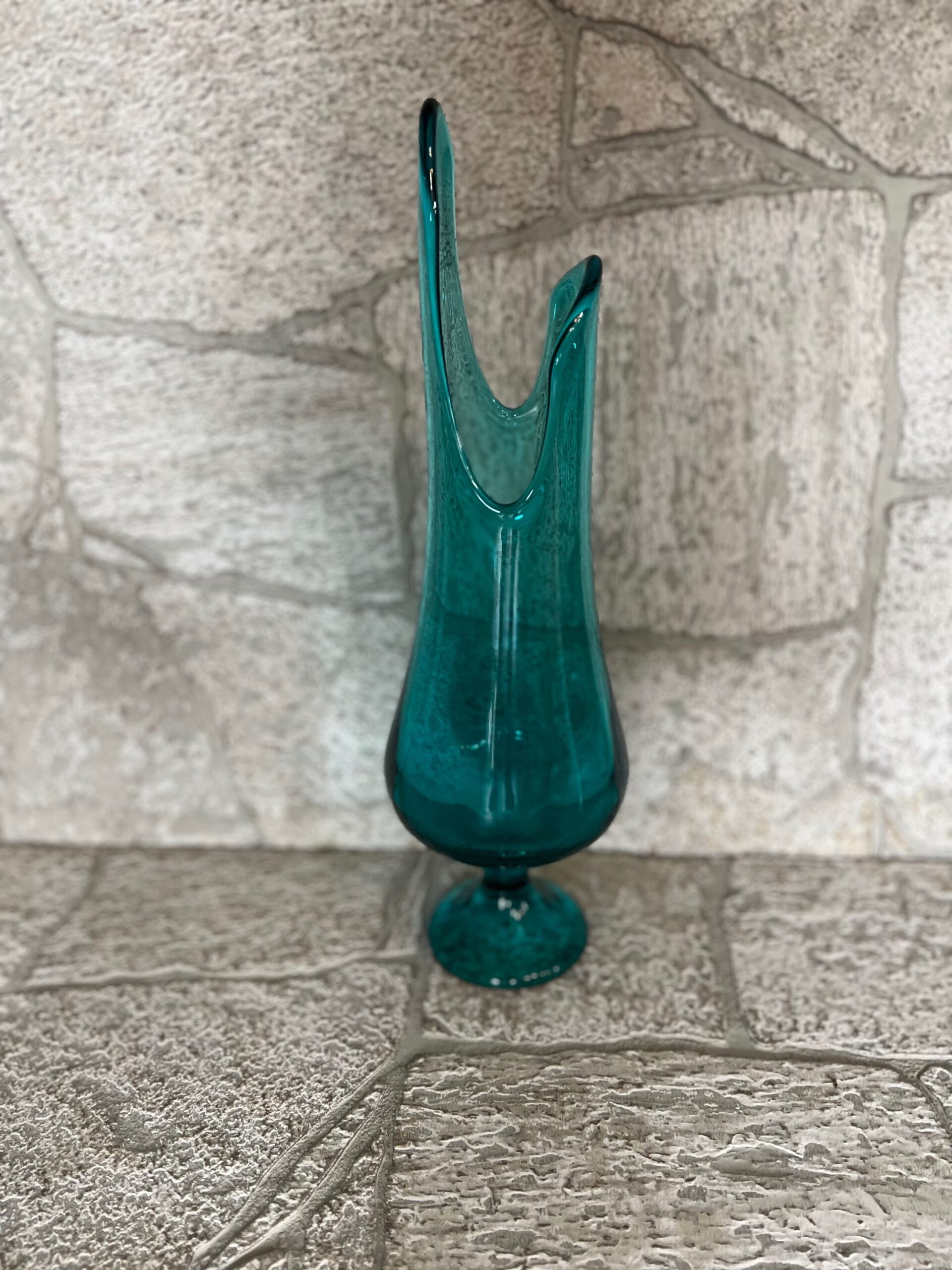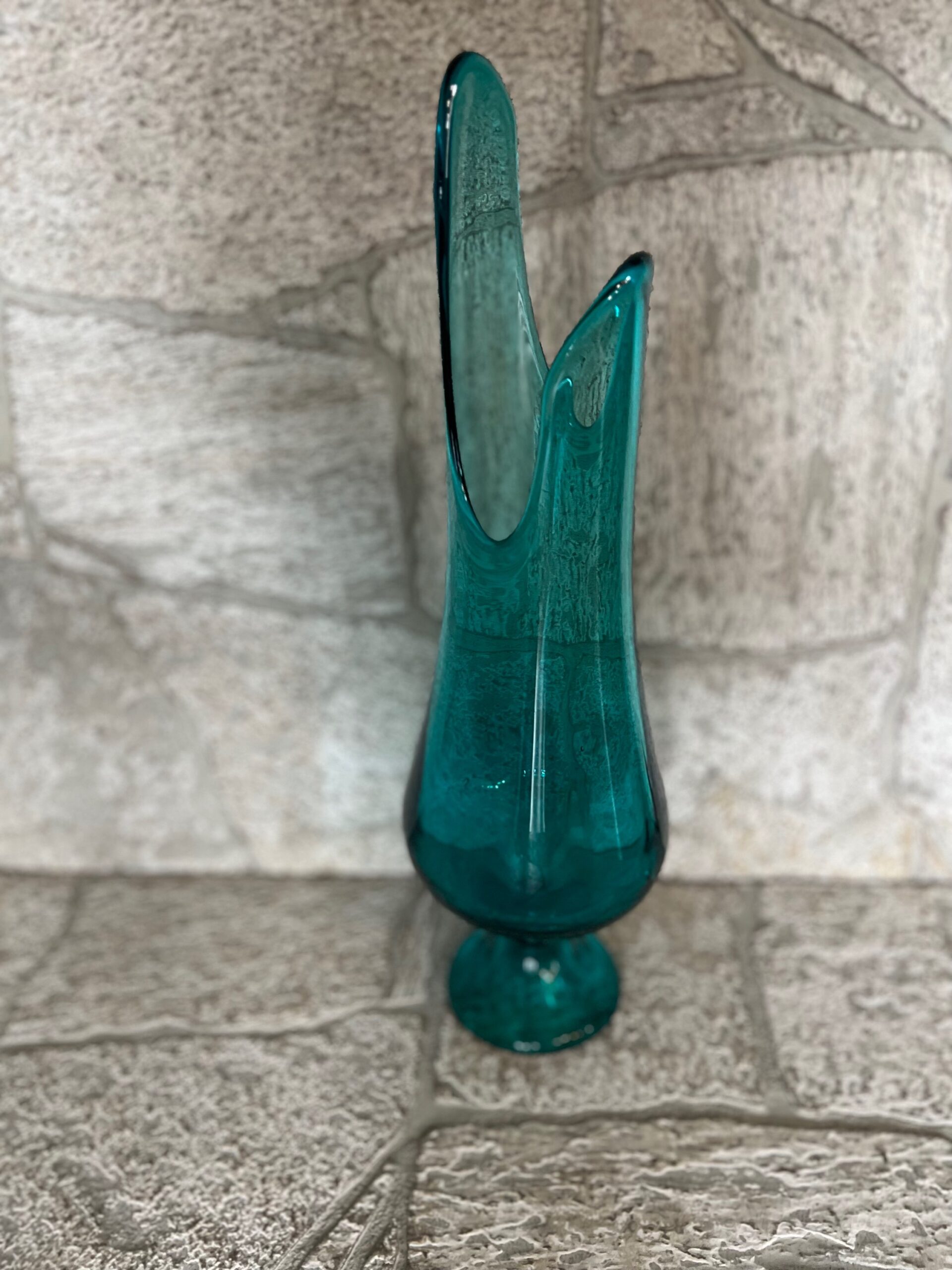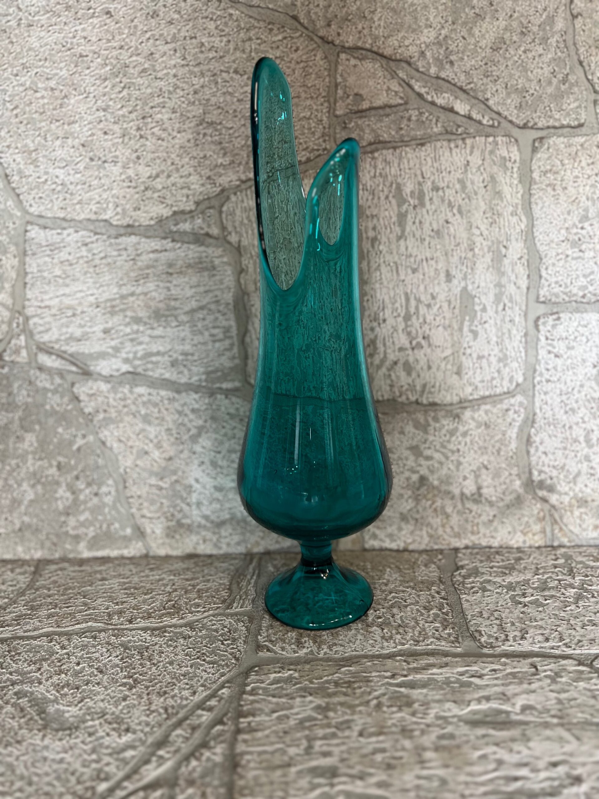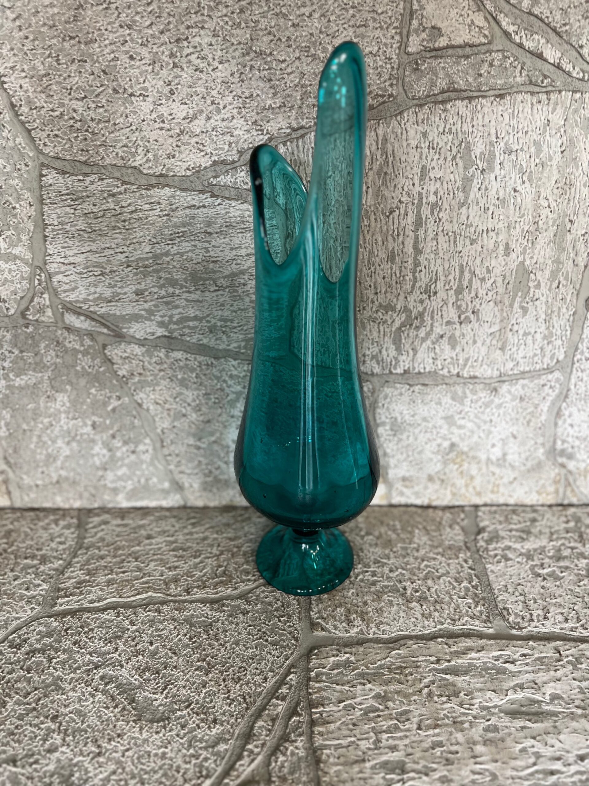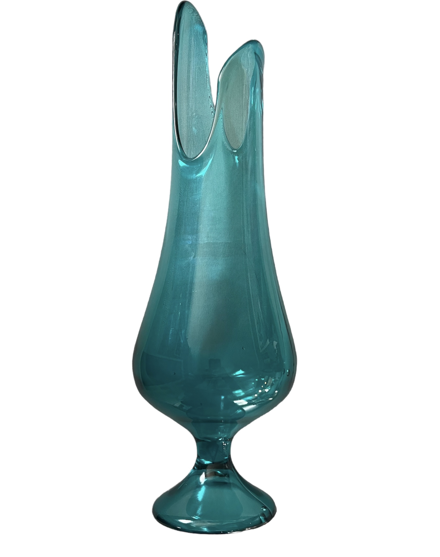 MCM Blue Swung-Swag Vase / LE Smith Double Dip Aqua Blue Pedestal Vase