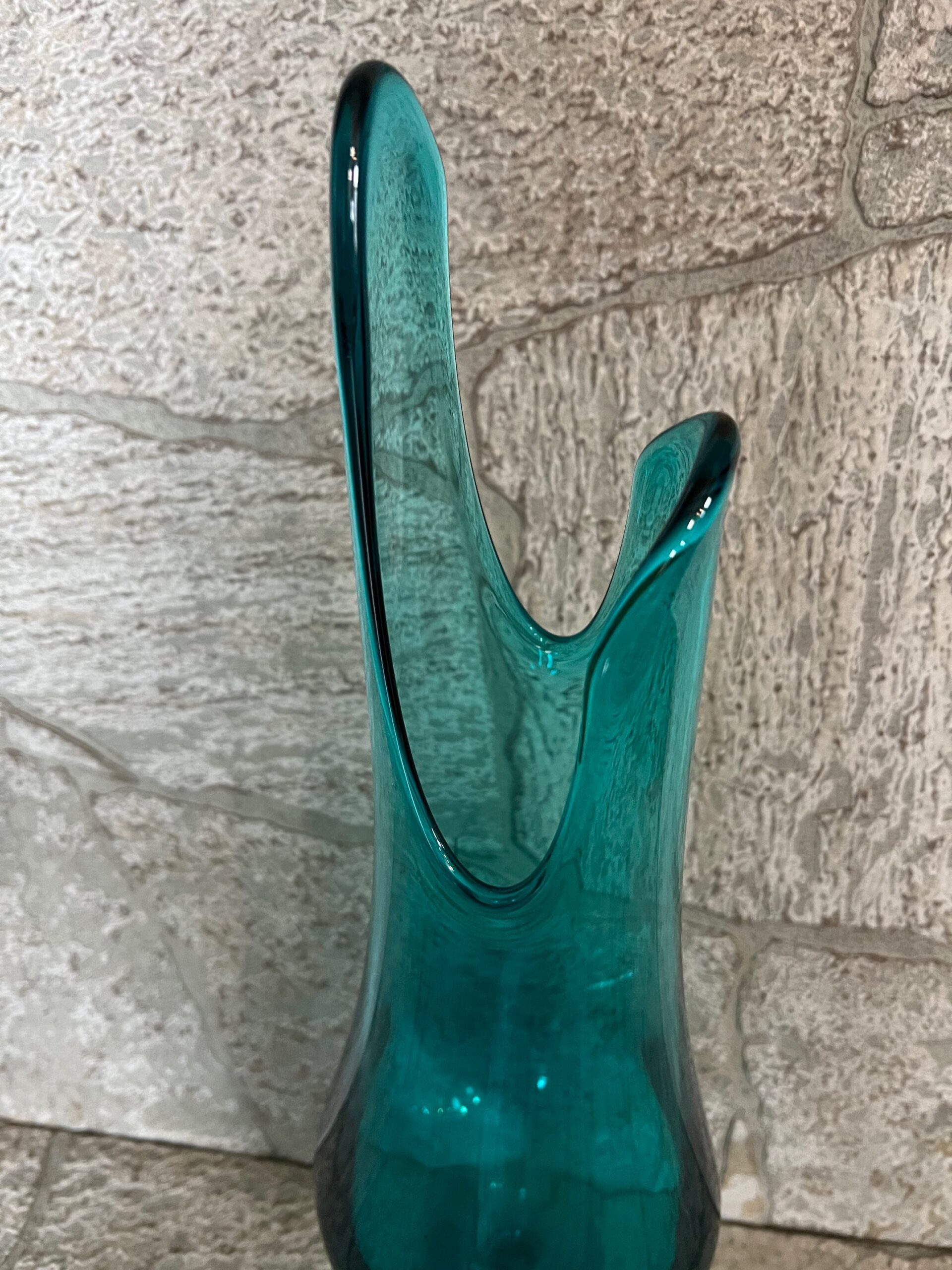 MCM Swung Vase/Fenton Green Glass Hobnail/MCM Green Vase
