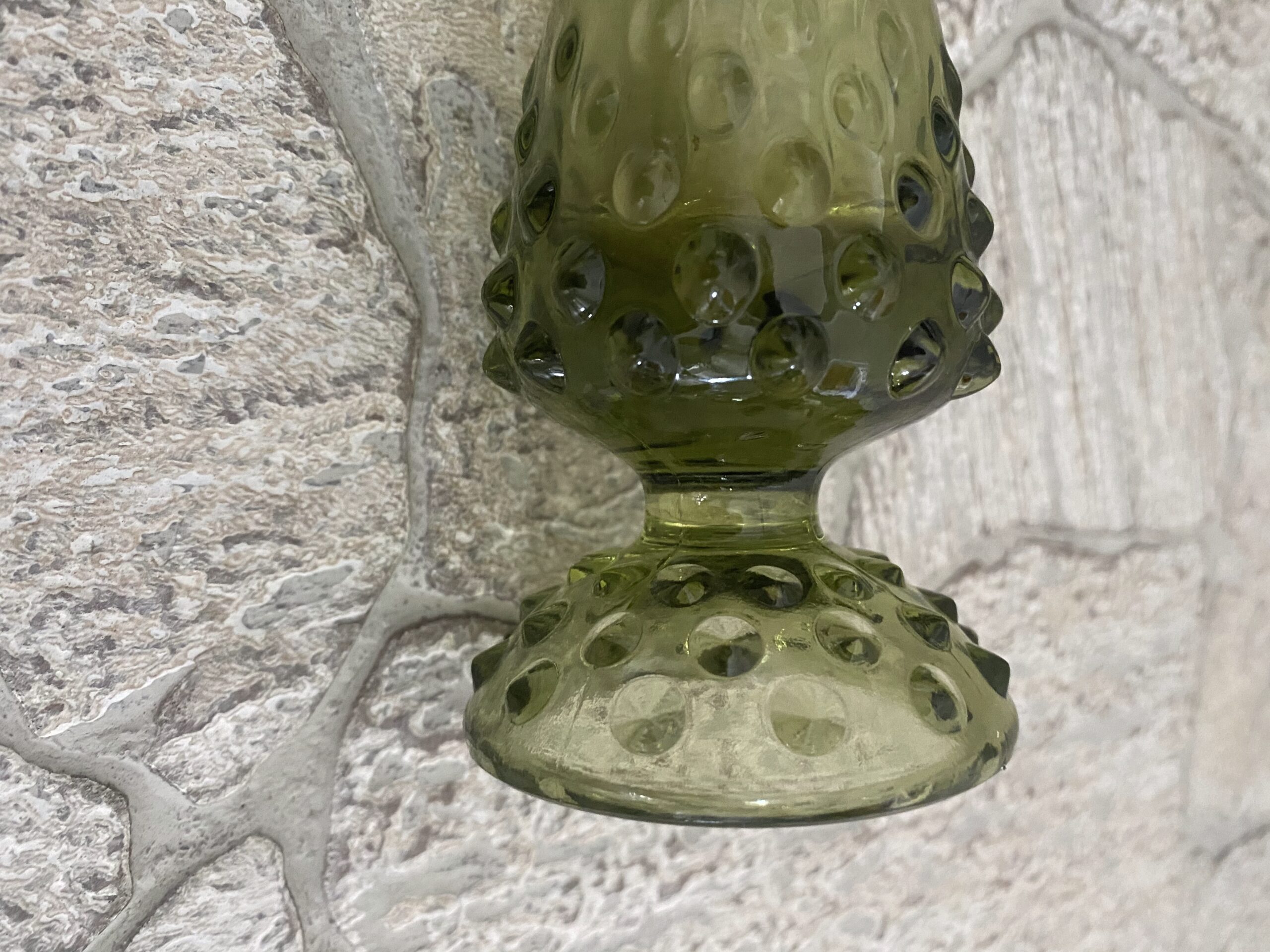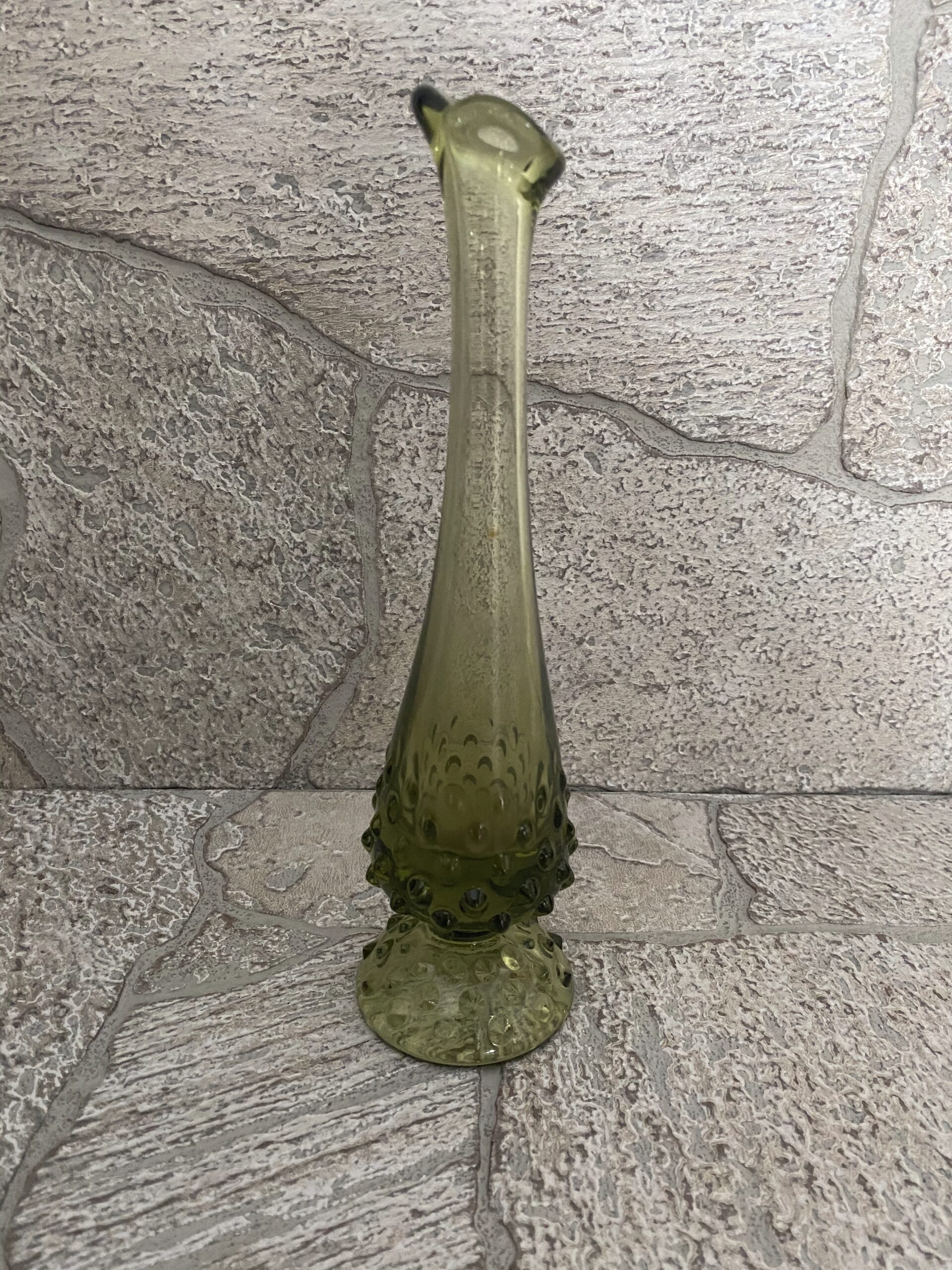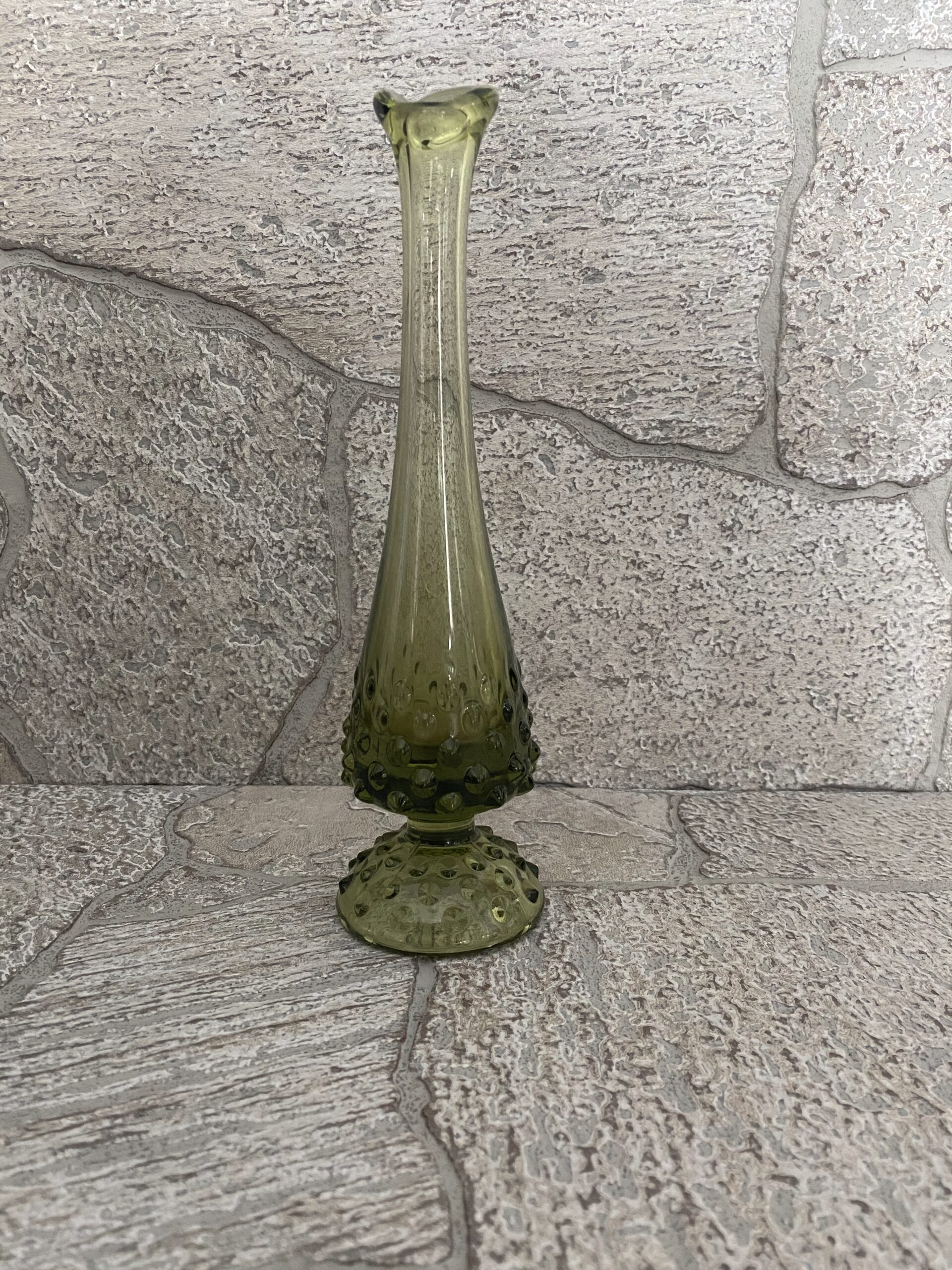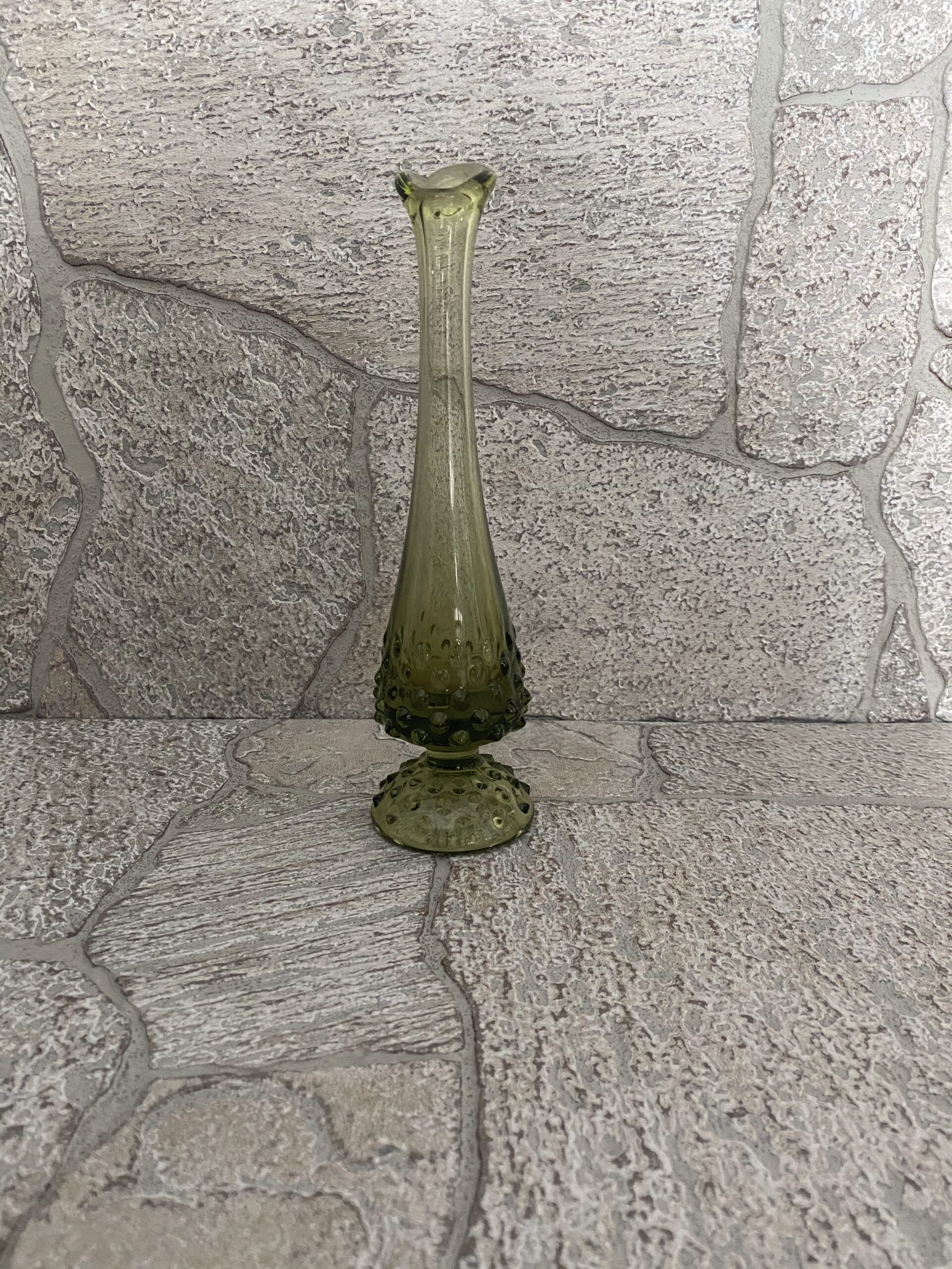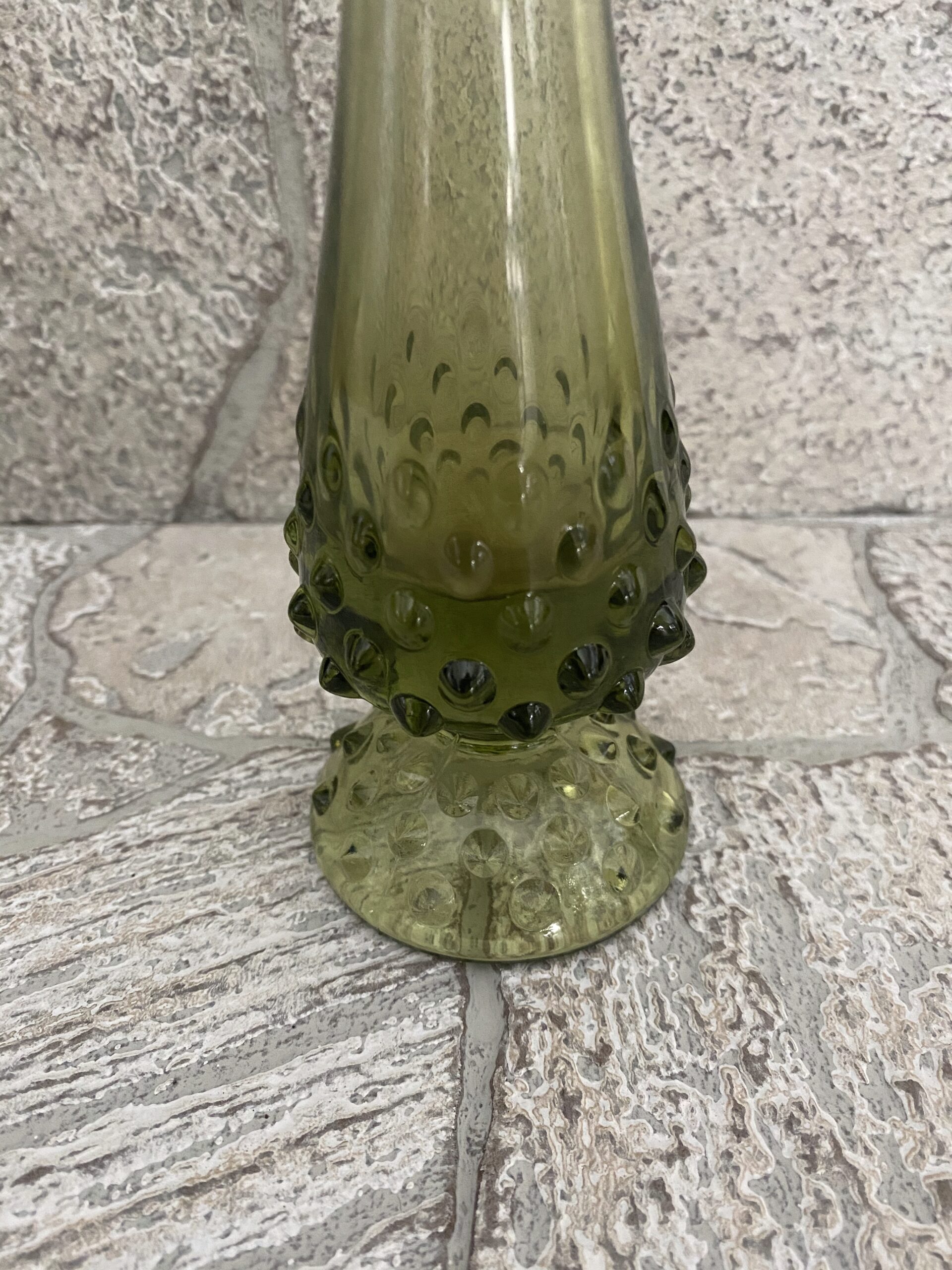 MCM Swung Vase/Fenton Green Glass Hobnail/MCM Green Vase