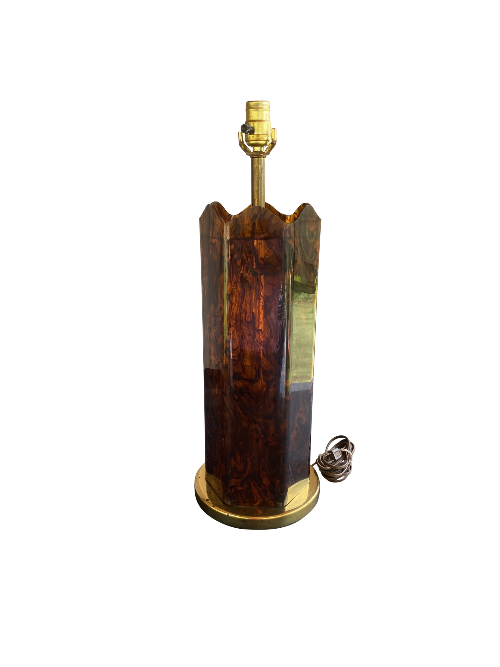 Tortoise Lucite Table Lamp / Faux Tortoise Acrylic / Hollywood Regency/ MCM
