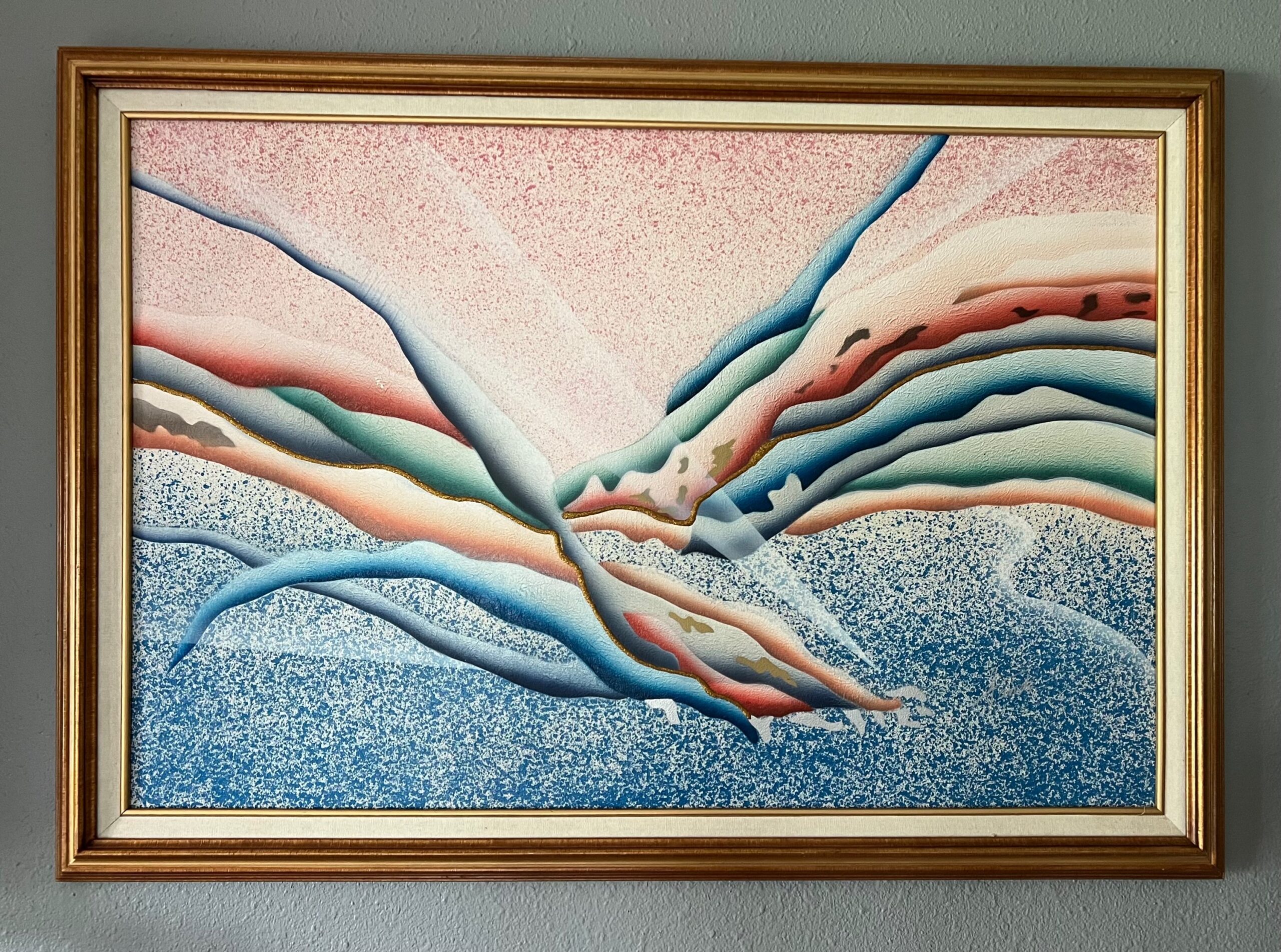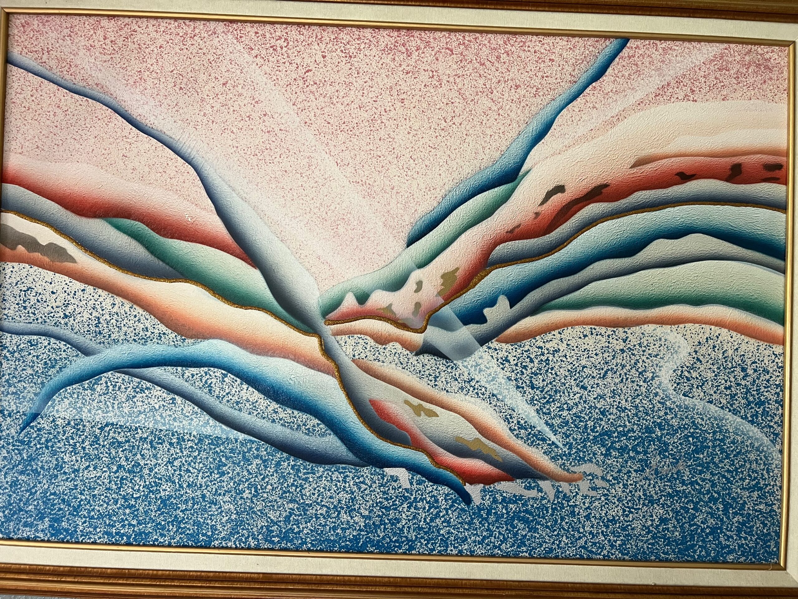 Beautiful extra-large Mid Century oil painting on canvas. This Spanish mission is painted in stunning colors...