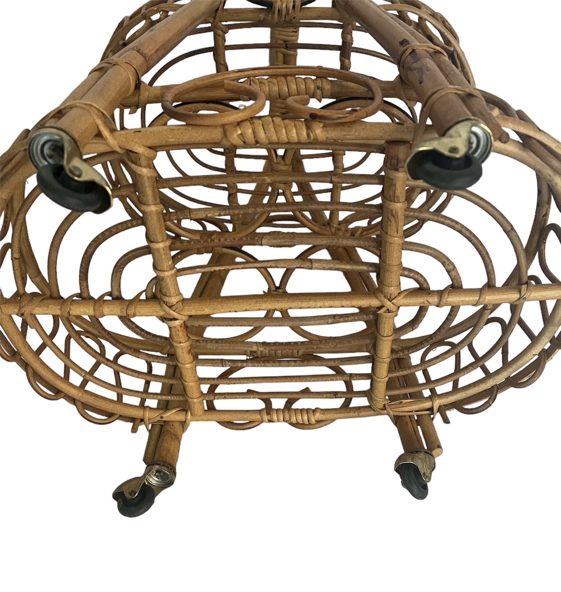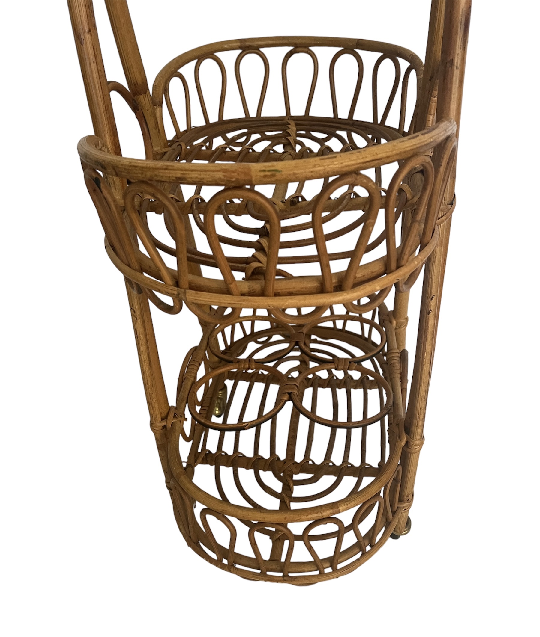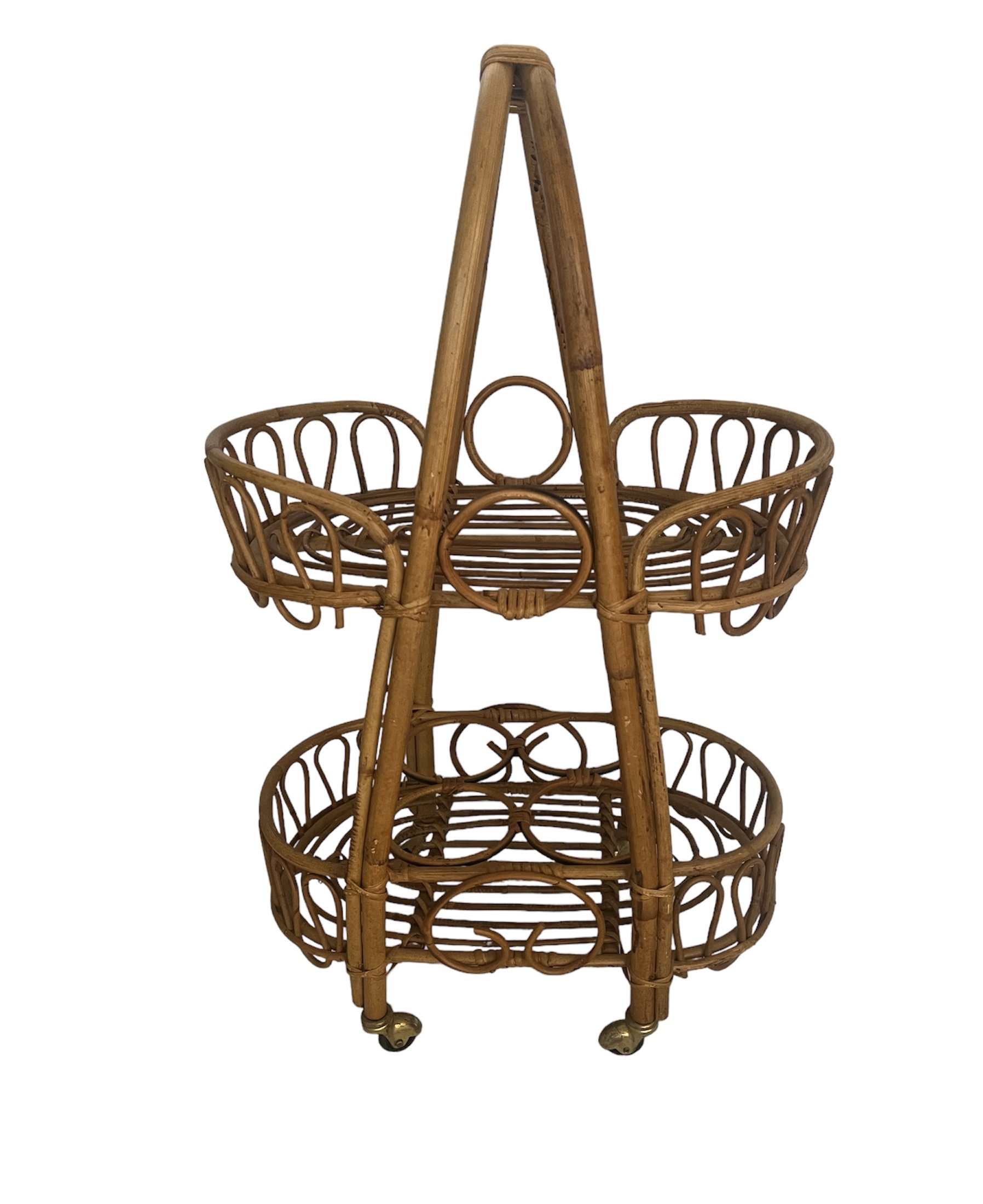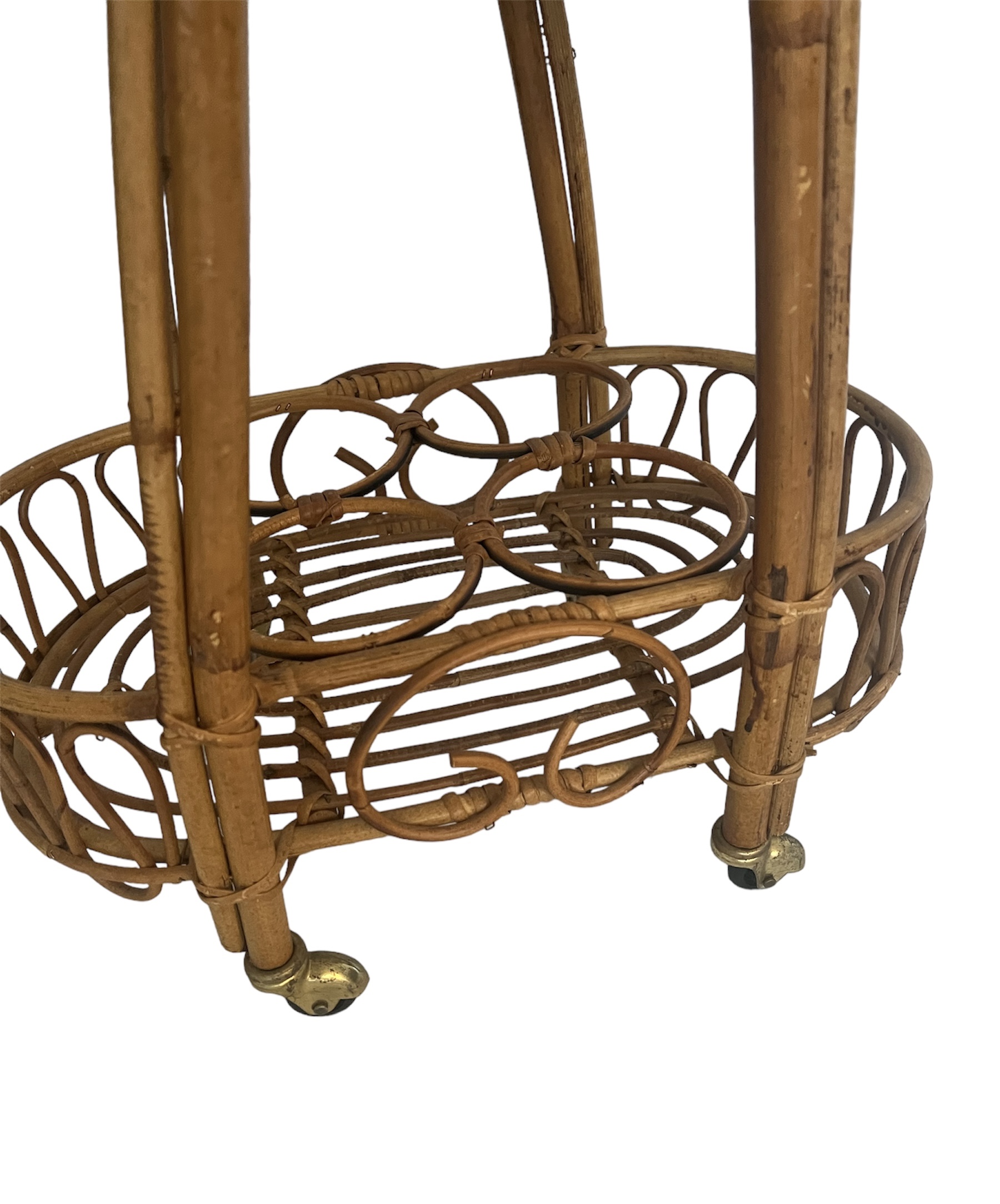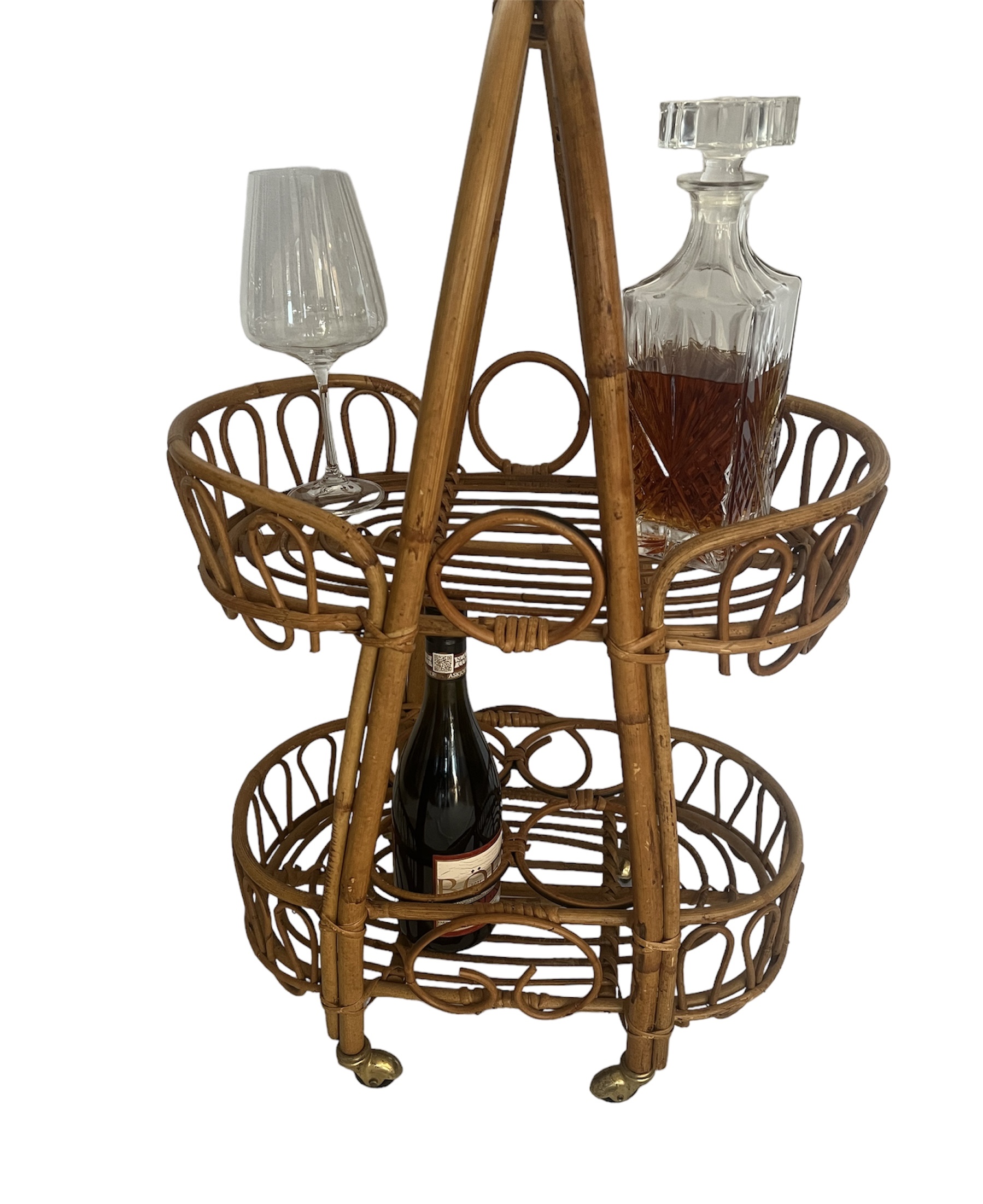 Vintage Italian Rattan Bar Cart/Trolley Franco Albini Riviera Style 1950s Tiki B
