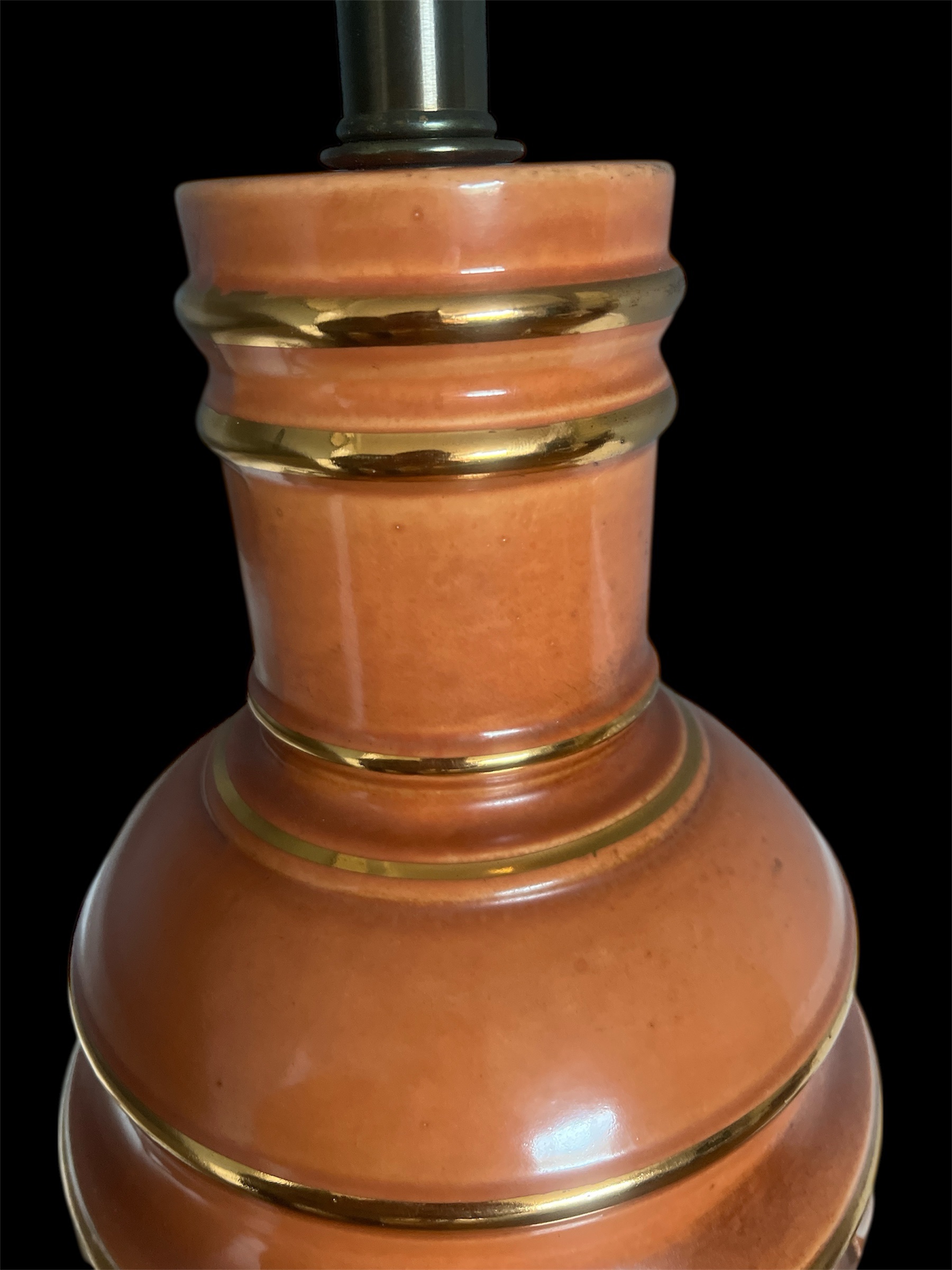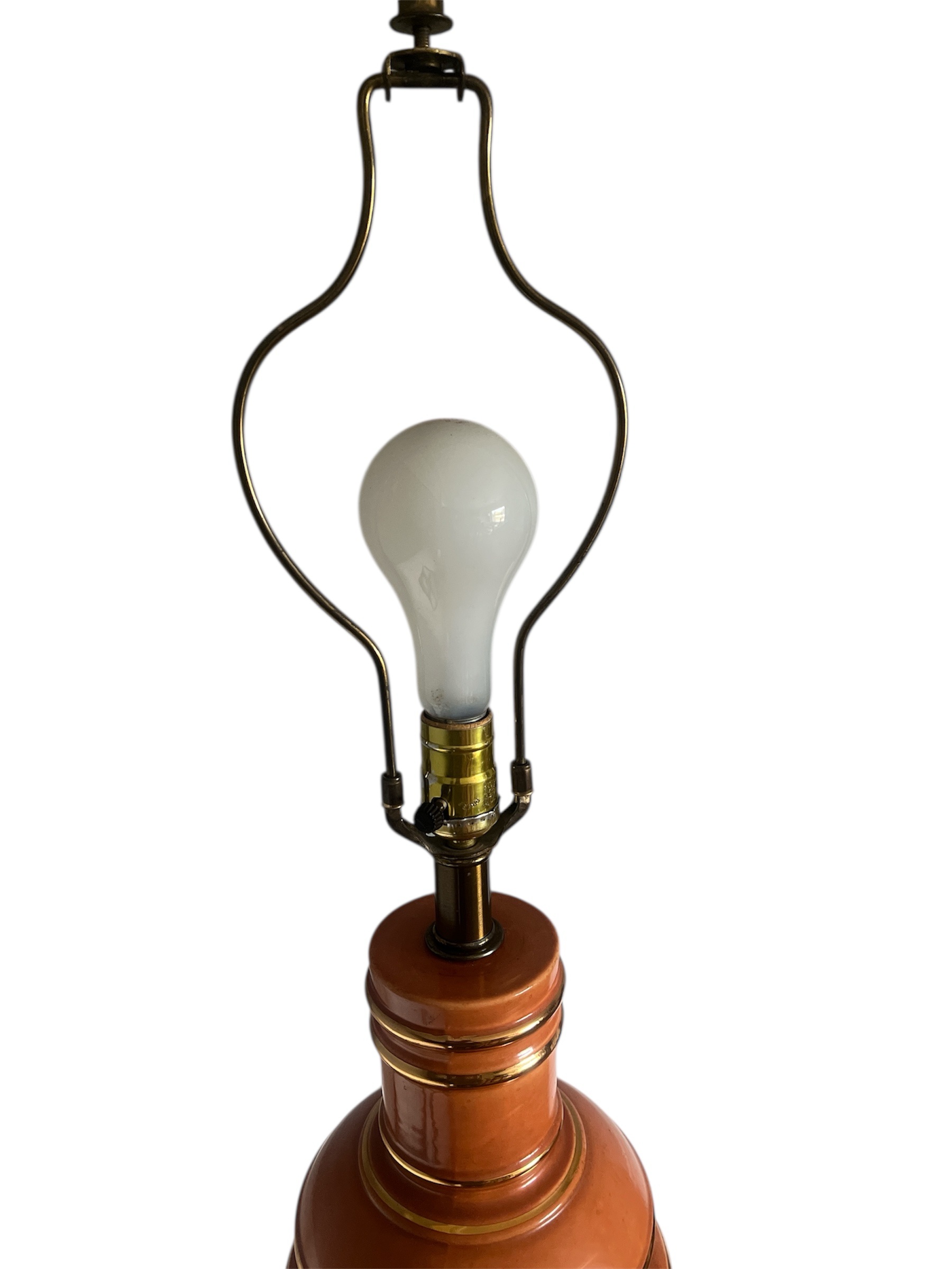 Vintage Mid-Century Ceramic Table Lamp Terracotta Color with Brass Accents
